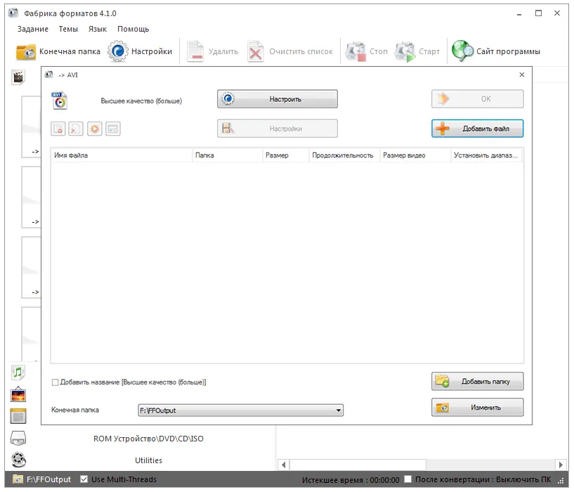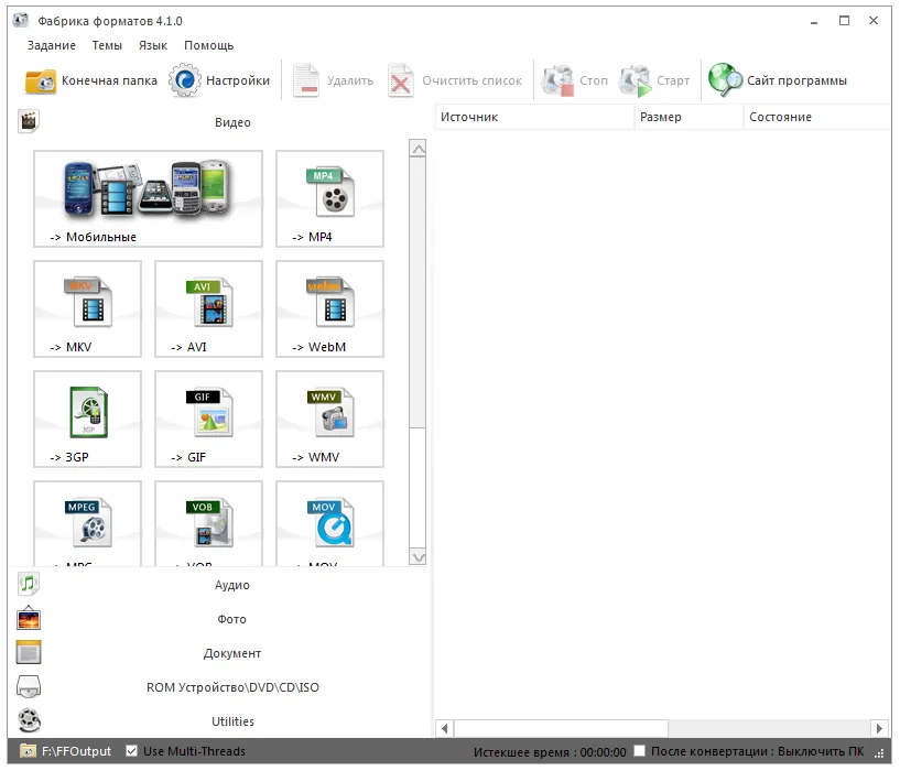 Format Factory - бесплатный, многоформатный конвертер видео, аудио и графических файлов.